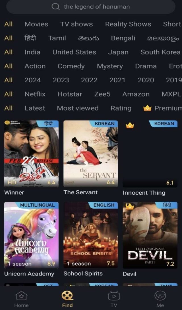 - Search by Keywords: Use the search bar to find specific titles, actors, or directors. You can also filter results by year, genre, or country for more refined options.