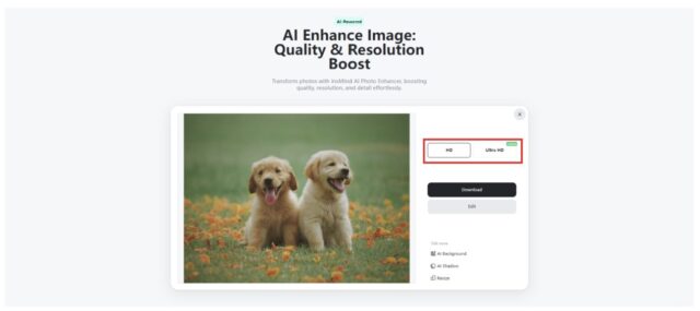 Step 4. Once you have uploaded your image you can choose between HD and Ultra HD. After, insMind AI Image Enhancer will automatically sharpen and improve your image’s quality efficiently and accurately with the help of Artificial Intelligence.